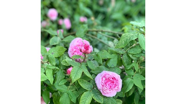 Historisk rose blomstrer i haven og bringer både skønhed og smag